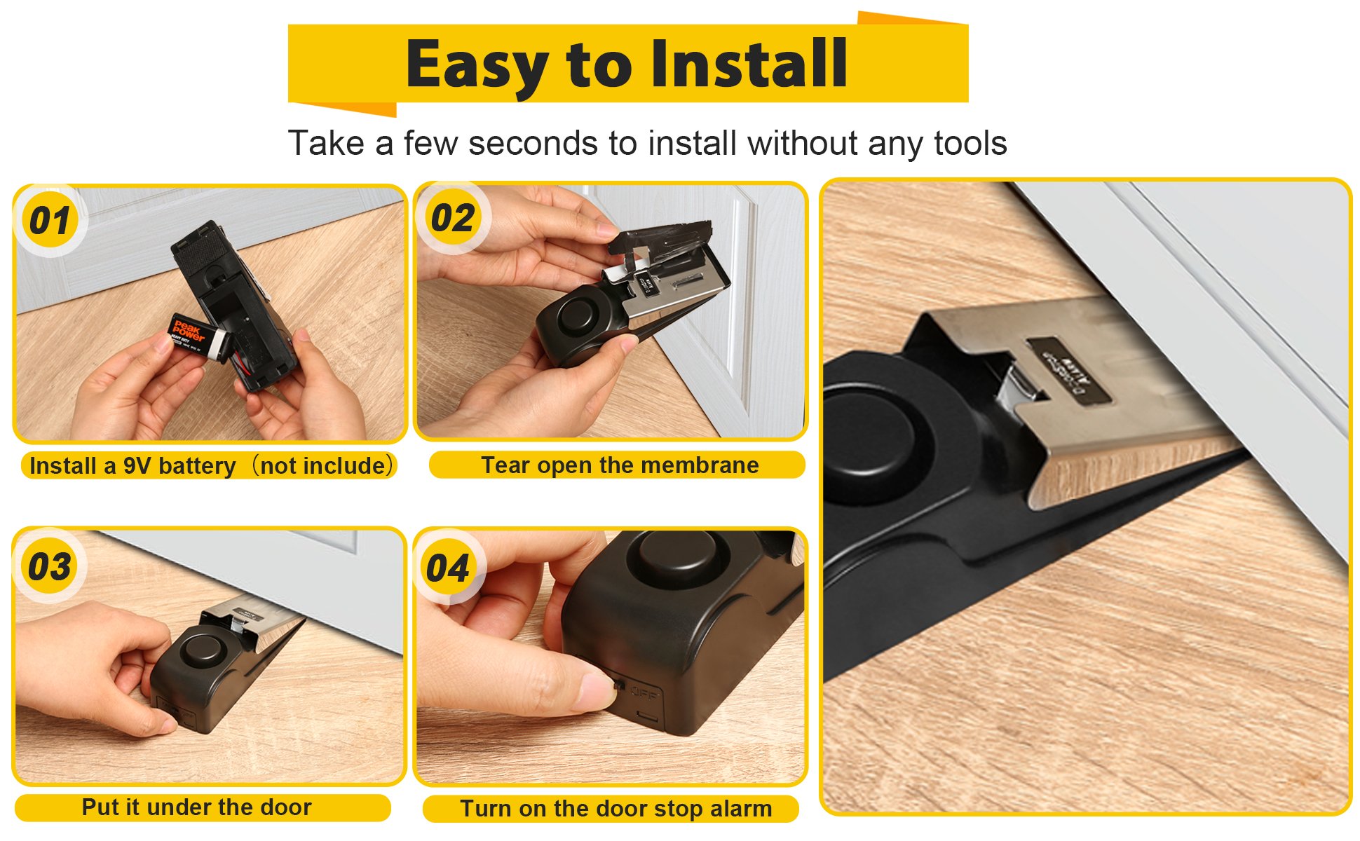 The Portable Wireless Alarm Door Stopper is the perfect security solution for your home or office. This easy-to-use doorstop alarm features a loud 120 dB siren that will deter intruders and alert you to potential danger. The wireless design means no installation is required, and the included batteries will keep the alarm sounding for up to one year. With its sleek design and simple operation, the Portable Wireless Alarm Door Stopper is the perfect way to keep your home or office safe and secure.