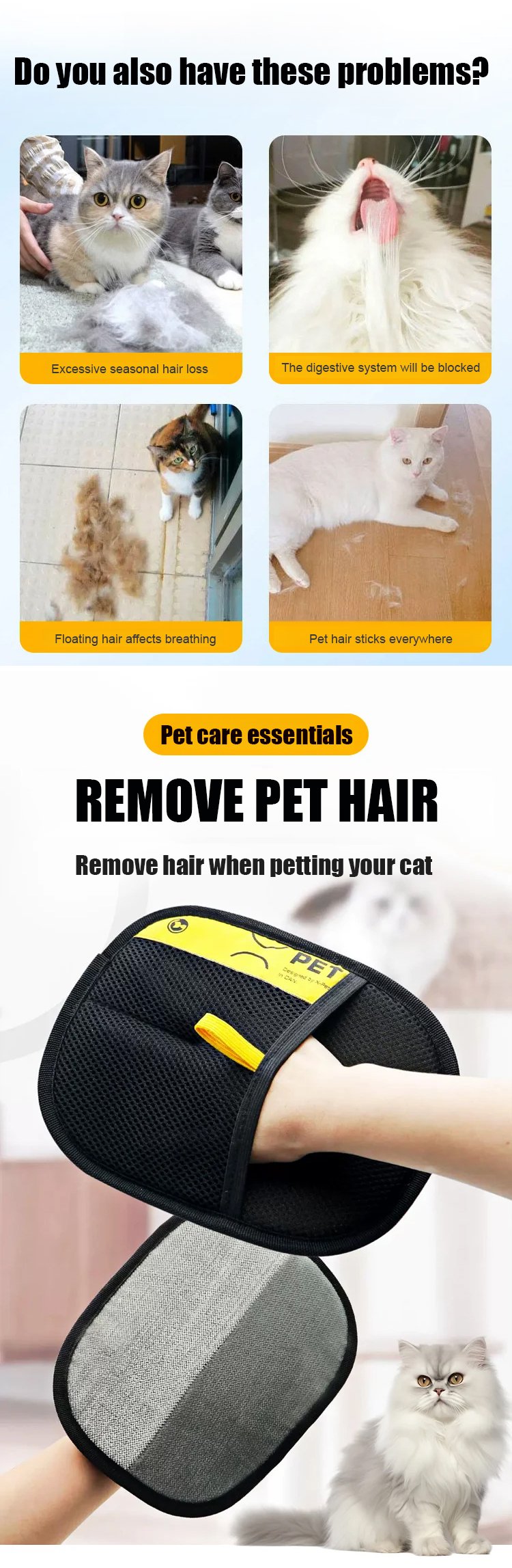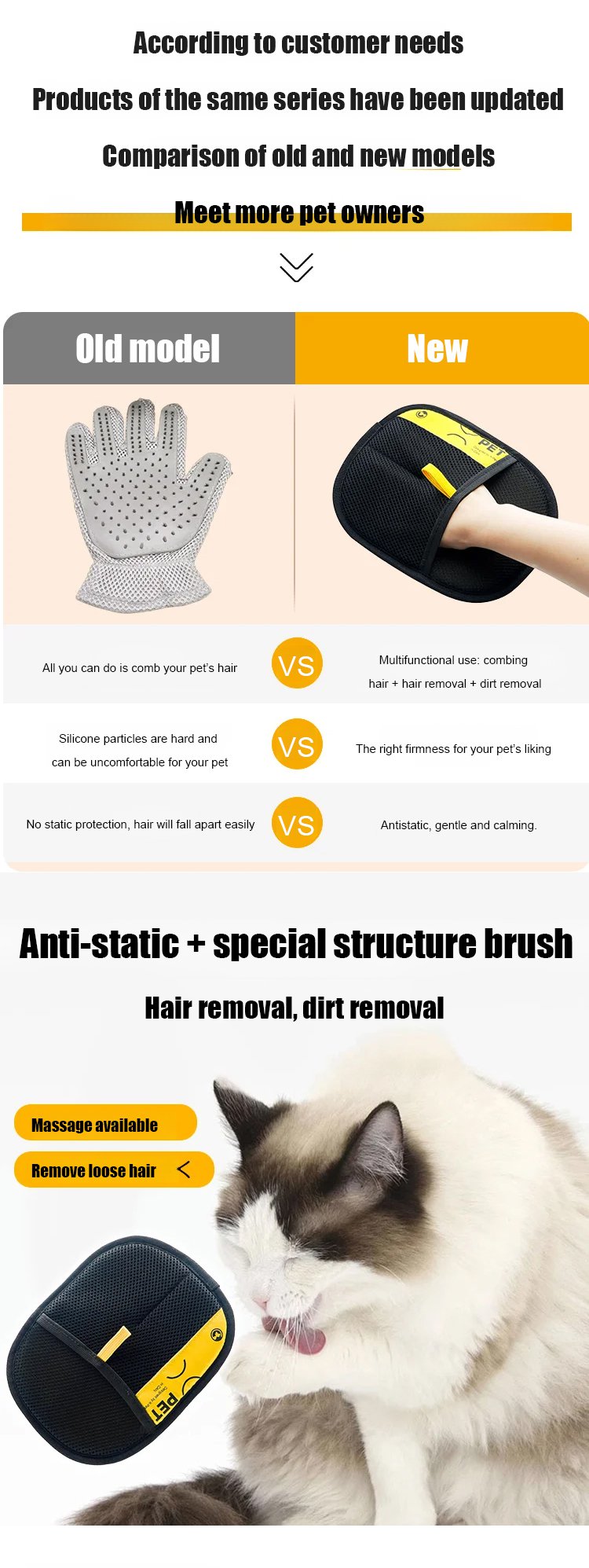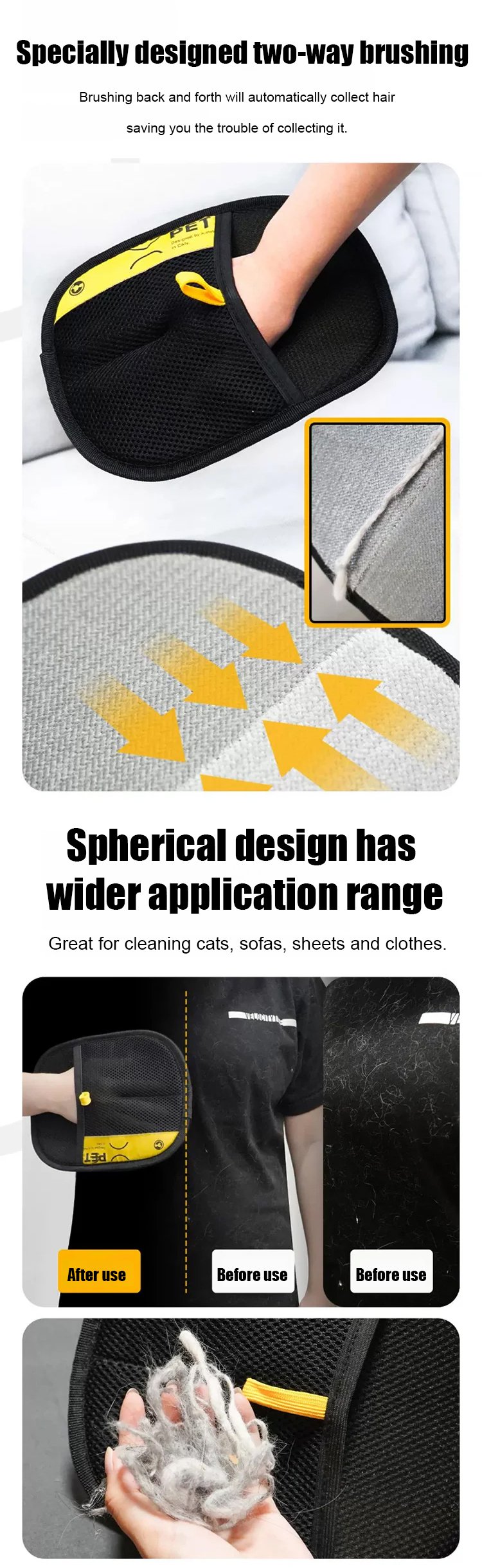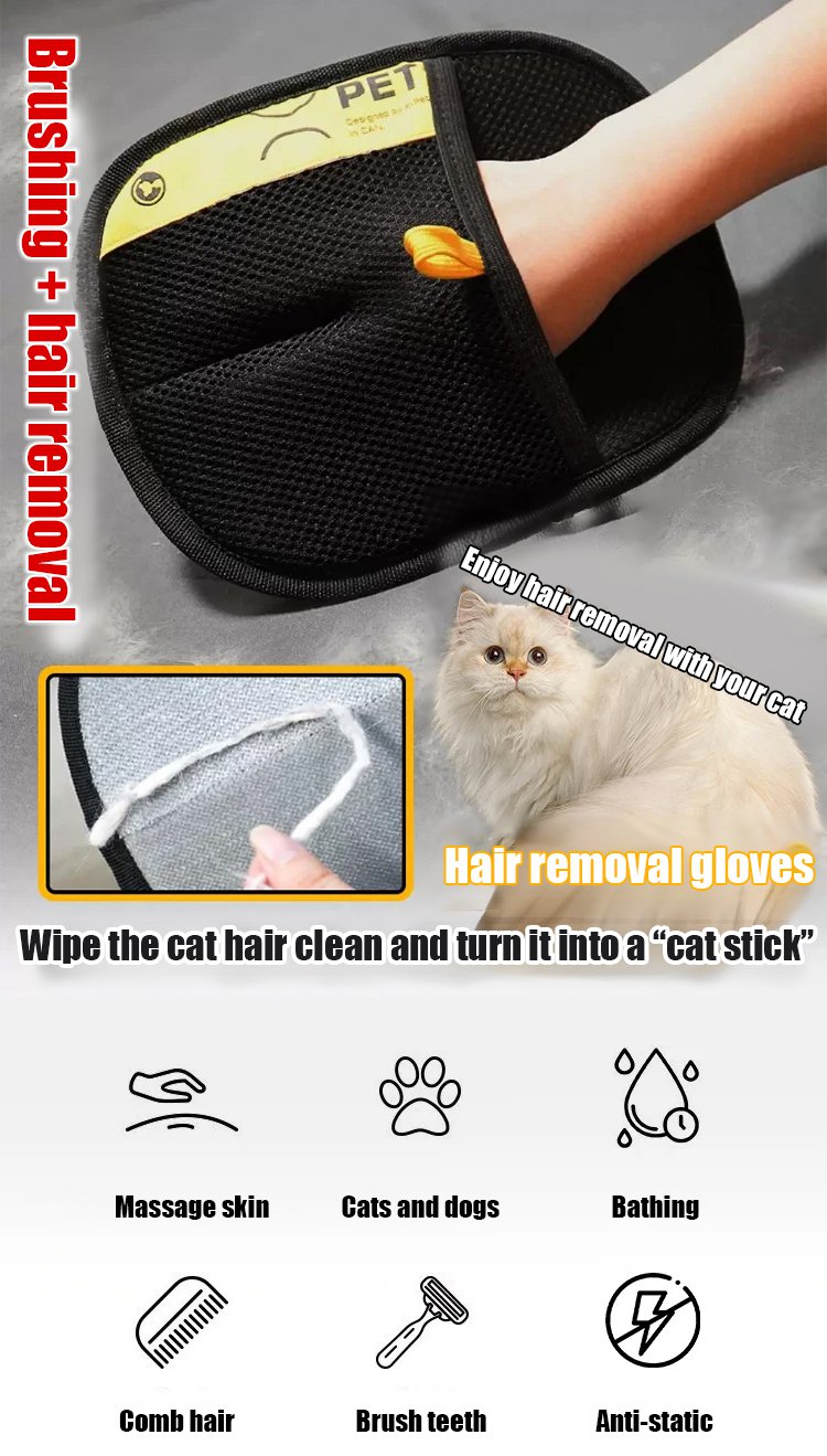Two-way pet static hair removal gloves